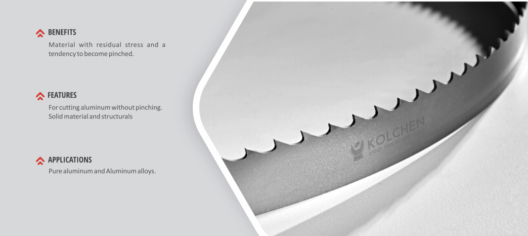 This bi-metal band saw blade is designed to prevent pinching when cutting materials with residual stress. It's specifically made for cutting aluminum and is suitable for cutting solid material and structural components. It's compatible with pure aluminum and aluminum alloys.